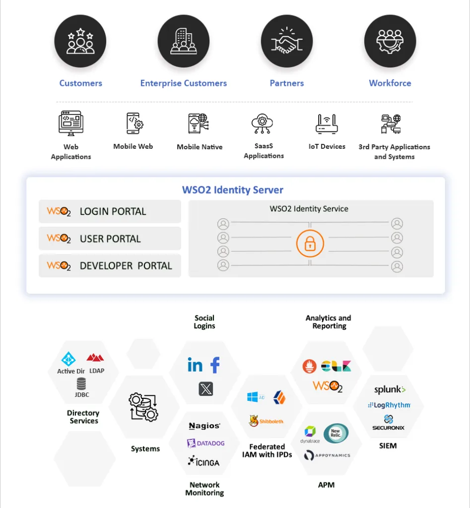 Identity Server is an identity and access management (IAM) product. It includes capabilities for identity federation, customer authentication, adaptive access control, and API security.